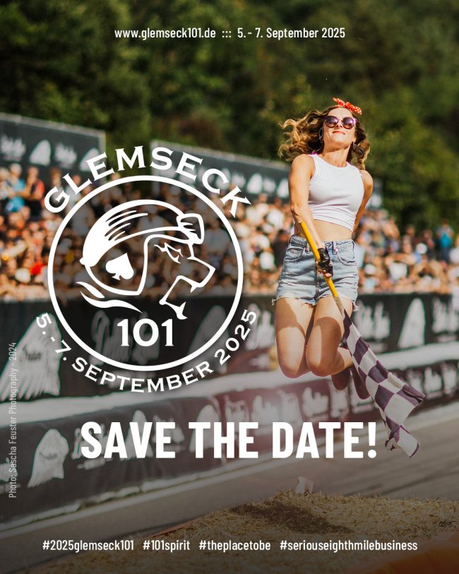 Save the date! »101 Reload 22« vom  2. – 4. September 2022. Traditionell am ersten Septemberwochenende. 2020 und 2021 konnte Runde 15 des europaweit bekannten Events mit bis zu 40.000 Besuchern aufgrund der Corona-Pandemie nicht stattfinden. Für das kommende Jahr sind wir zuversichtlich! Die Planungen haben begonnen. Weitere Informationen: https://www.glemseck101.de/